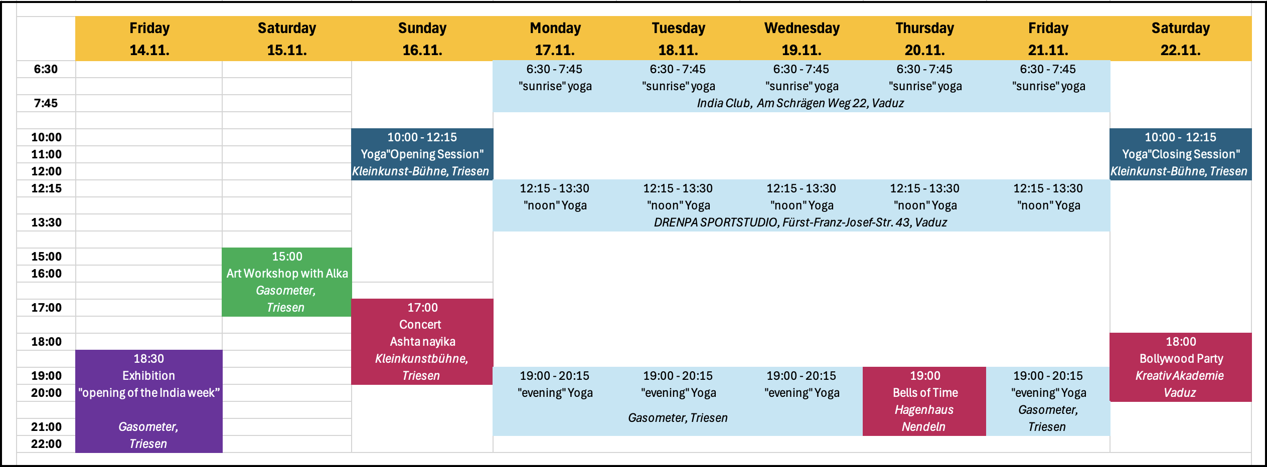 “sunrise” Yoga: India Club, Am Schrägen Weg 22, Vaduz;